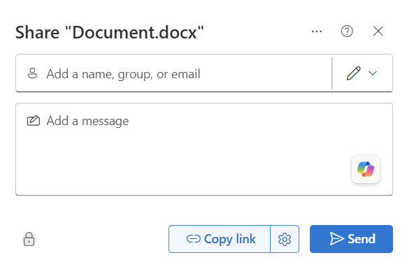 - Select Copy Link to copy the link. Paste the link and send the link where you want to send it, like an email, message, or post.
