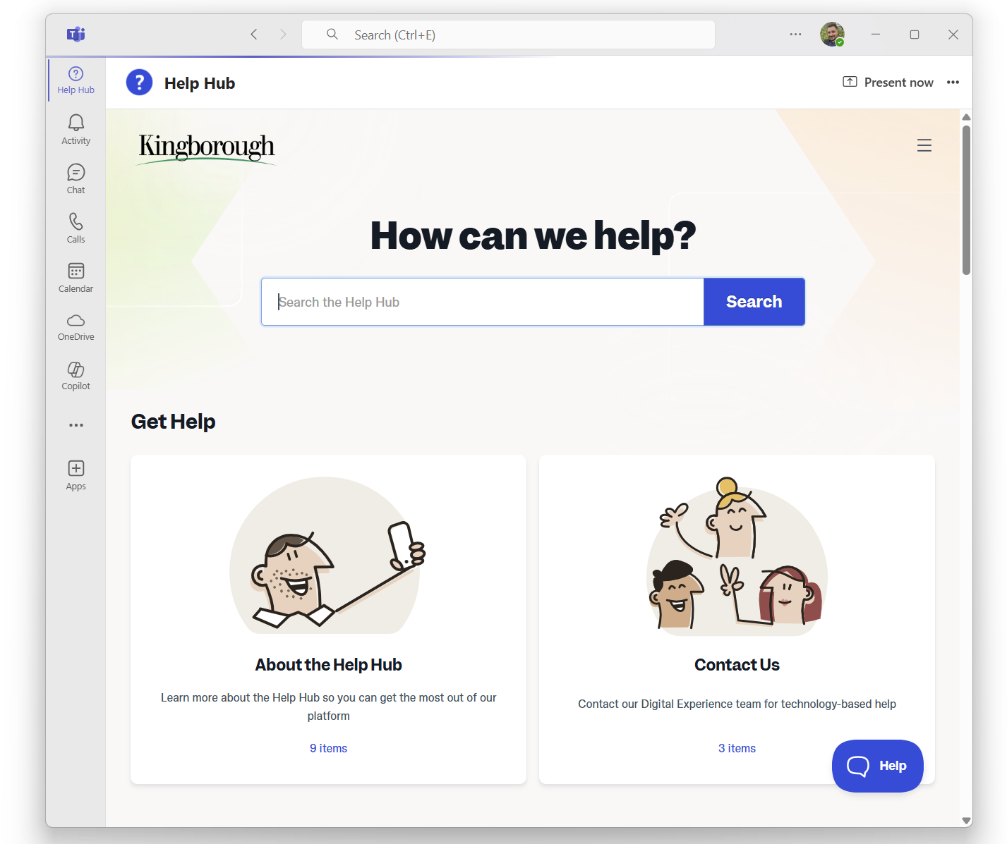 Access the Help Hub from Microsoft Teams