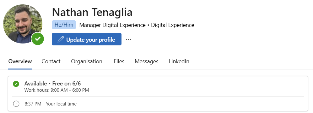 You can also display your pronouns in your Microsoft 365 profile, which shows in Teams, Outlook, and other Microsoft apps when your profile is selected.