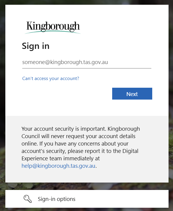 If you are on a non-Kingborough Council device, you will be asked to sign in.