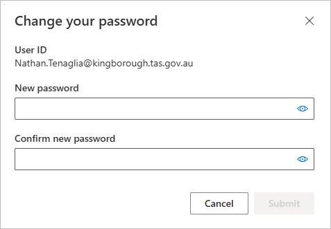 Update your current password to a new one if you need to change it. Ensure you have all your devices with a Kingborough Council sign-in (e.g. smartphone with Outlook, OneDrive, and Teams) available and ready to update.